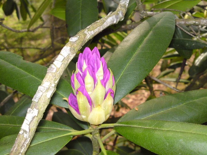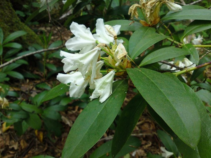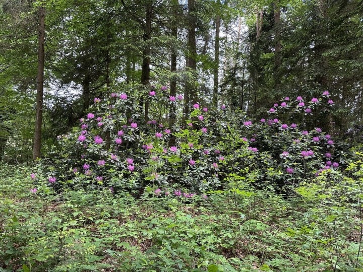 Auf diesem Foto kann man sehr schön sehen, wie die Rhododendronblüten im Wald „stehen“. Und in der Tat, manche sind wirklich bis zu 10 m hoch!