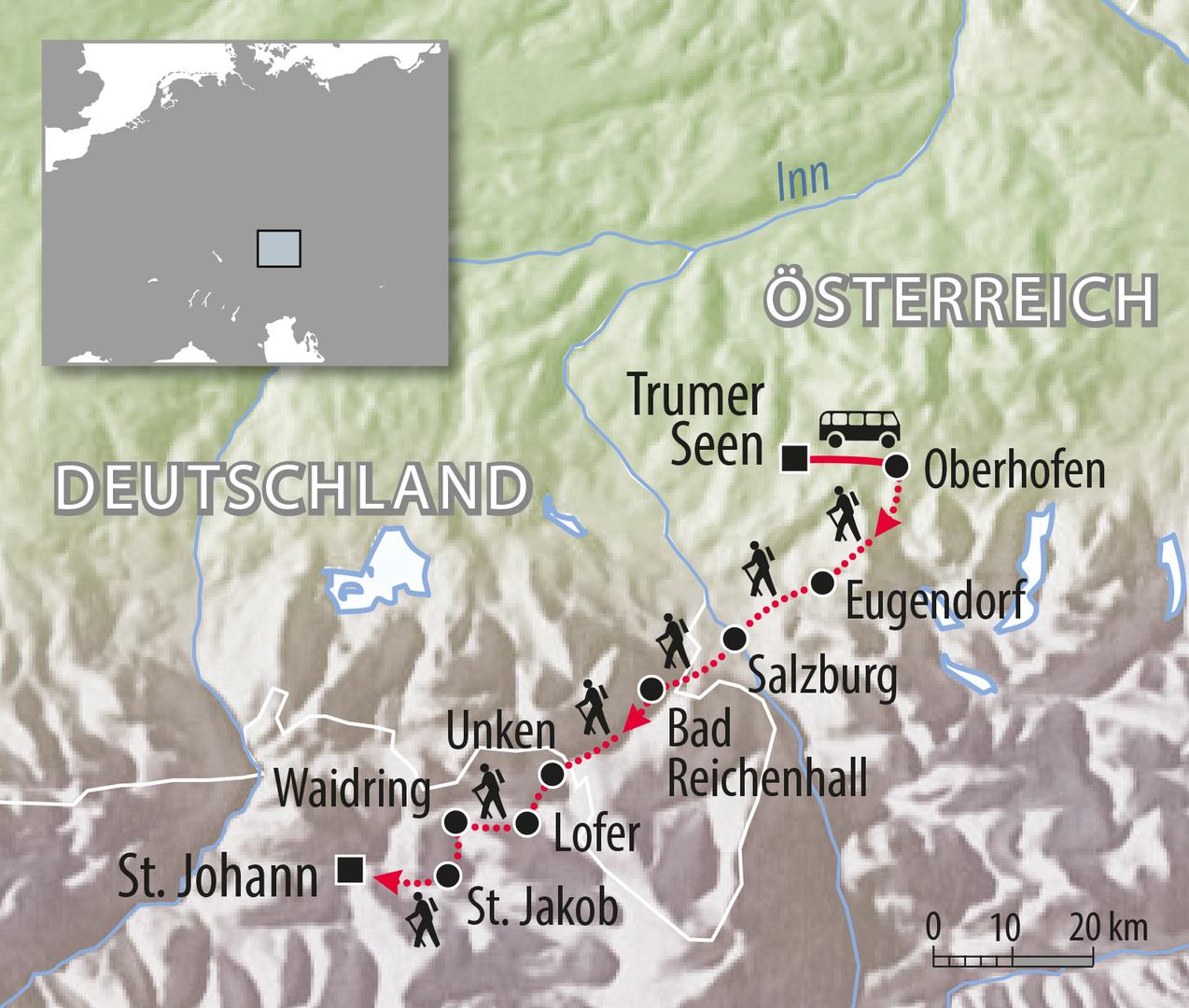 - Rücktransfer per Kleinbus nach Salzburg bzw. an die Trumer Seen, € 189,- pro Fahrt (bis 8 Personen), Reservierung erforderlich, zahlbar vorab.