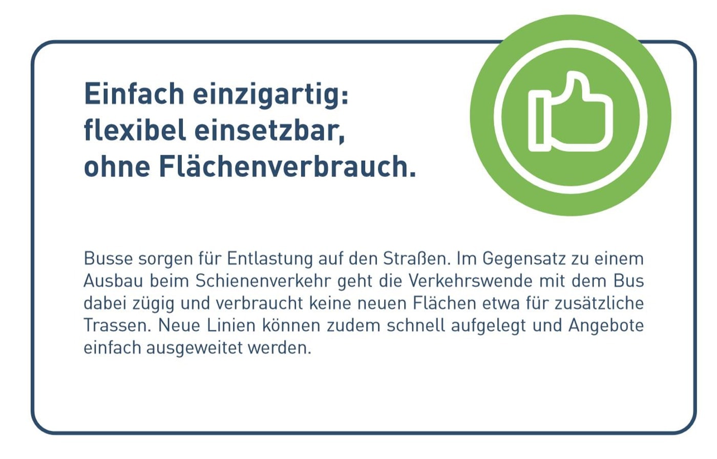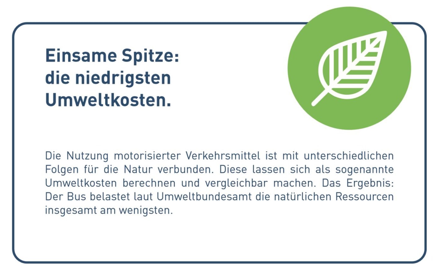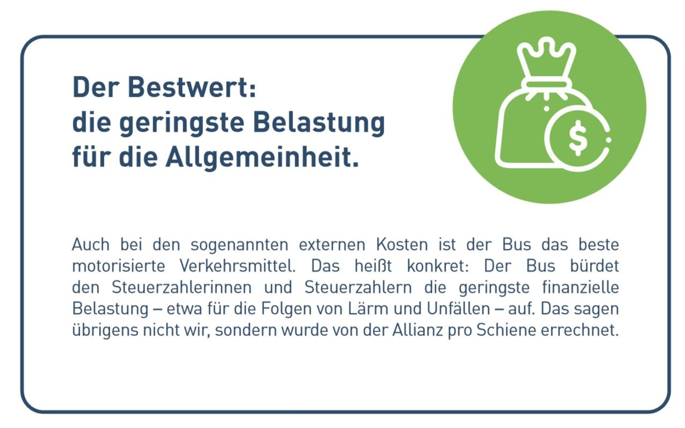 - Der Bus hat die geringste Belastung für die Allgemeinheit – spart Steuergelder!