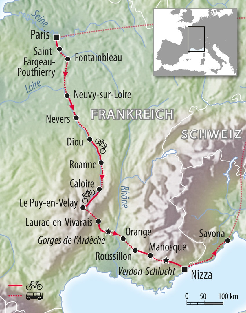 Radreise von Paris nach Nizza ans Mittelmeer