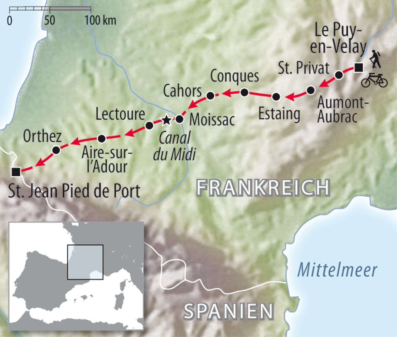 Der Jakobsweg in Frankreich mit dem Rad „Chemin – St.- Jacques“ von Le Puy bis in die Pyrenäen - die Via Podiensis ist ein alter Weg....