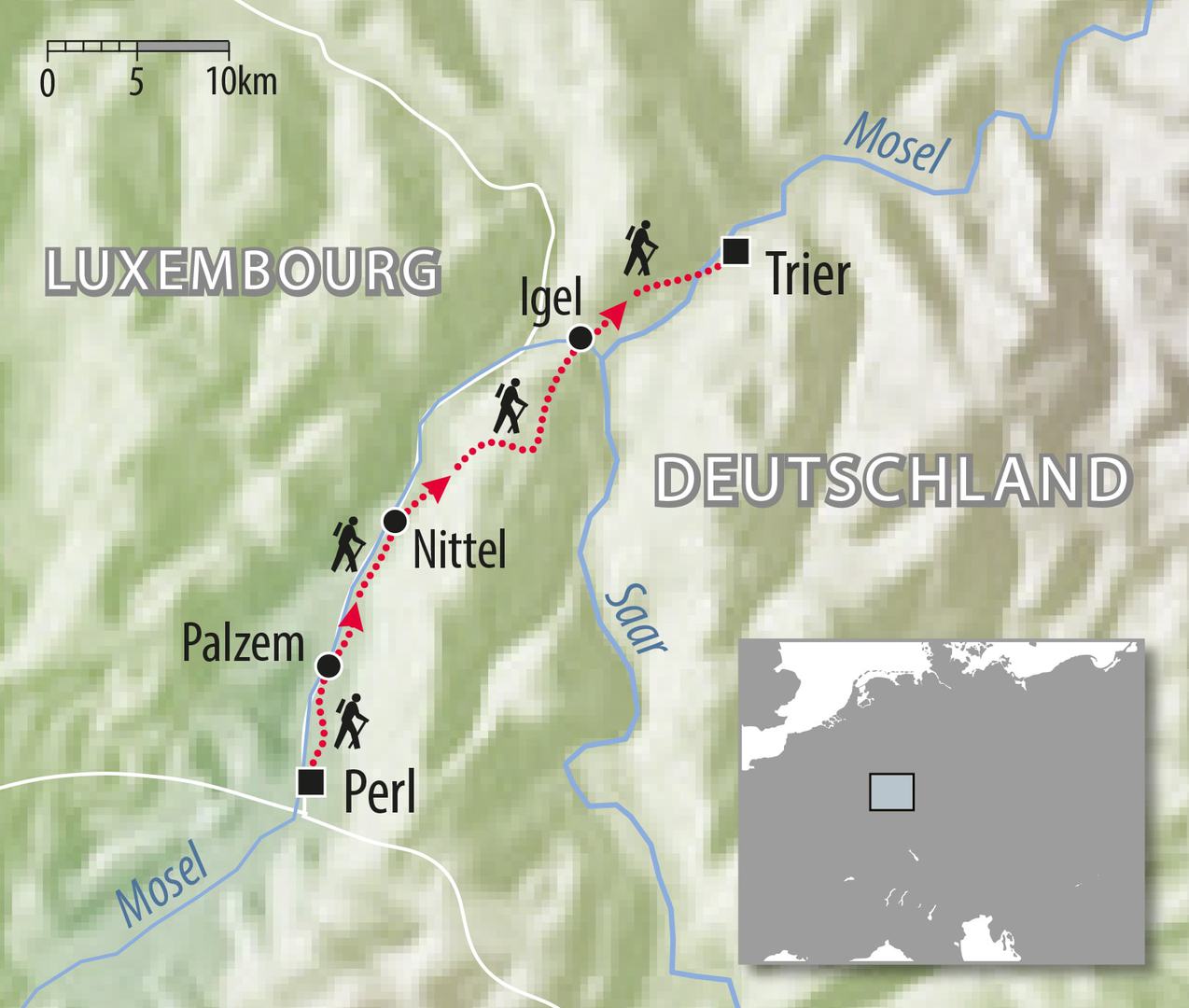 2. Tag: Perl - Palzem ca. 5 bis 6 Stunden 22 km ↑400 m ↓450 m