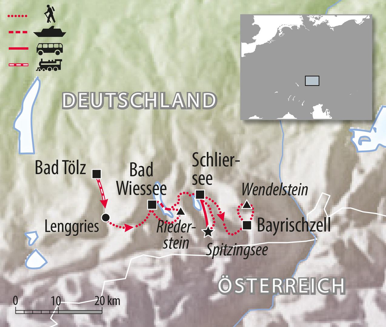 - Rückreise von Bayrischzell nach Bad Tölz per Bahn in ca. 1,5 Stunden.